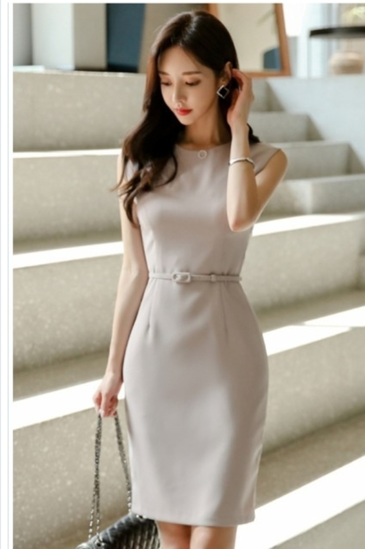 大人 ワンピース タイト 膝丈 デザインタック ウエスト切替 ノースリーブワンピース フィット 大人可愛い エレガント シンプル 高級感 無