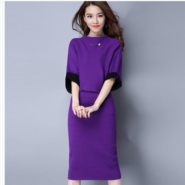 大人 ワンピース タイト 膝丈 ニットスーツ スカートスーツ セーター タイトスカート 上下セット 大人 通勤 美スタイル レディース ファ