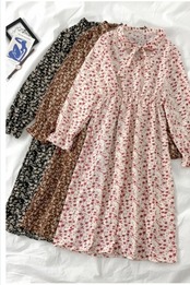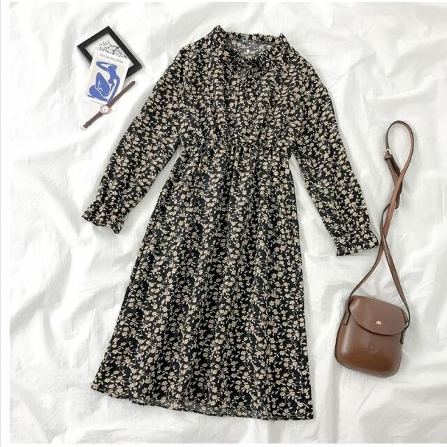 花柄 ロングワンピース 長袖 ワンピース レディース 長袖ワンピース 花柄 ハイウエスト 上品 カジュアル 大人可愛い きれいめ