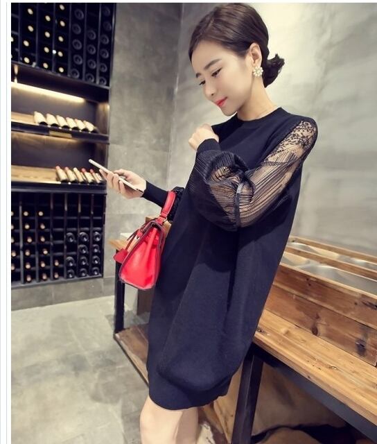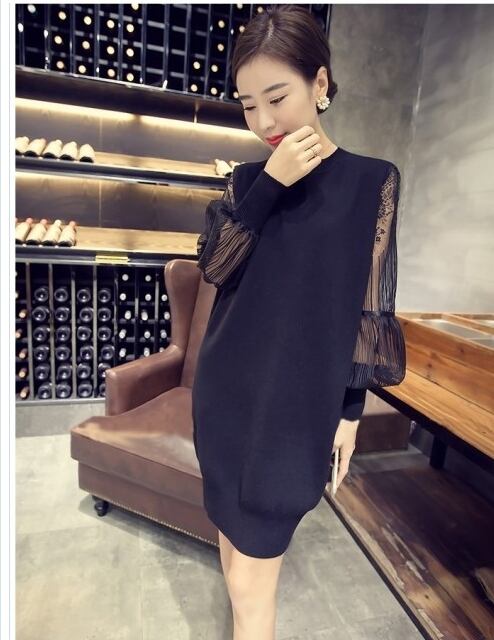 大人可愛い チュニック ワンピース トップス チュニック ミニワンピ レース ハイネック 長袖 バルーンスリーブ 無地 シースルー 透け感 I