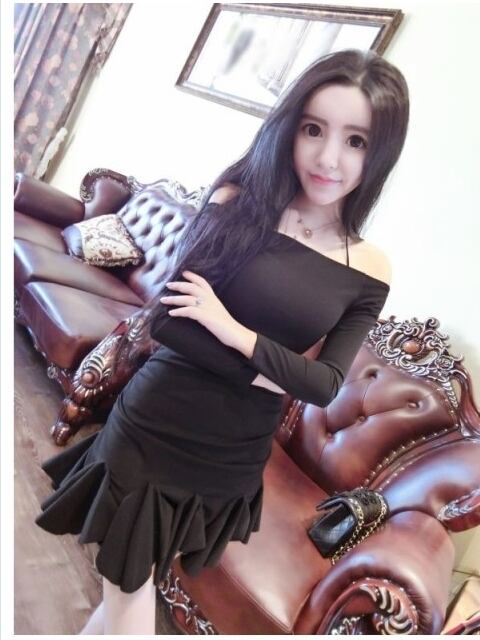 ボートネック ワンピース ワンピース 長袖ワンピ フリル裾 ショート丈 ミニワンピ 肩出し 無地 シンプル スリム タイト セクシー