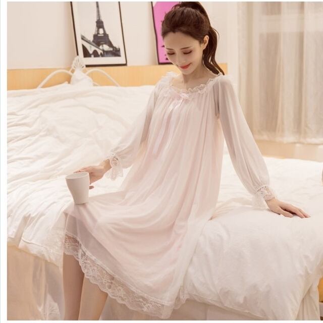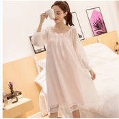 ボートネック ワンピース ネグリジェ ワンピース レース ボートネック 長袖 リボン パジャマ ナイトウエア 寝巻き