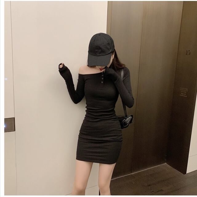 ボートネック ワンピース タイトワンピース スリット ペンシルワンピース レディース 春秋冬 長袖 ボートネック 膝丈 パーティードレス