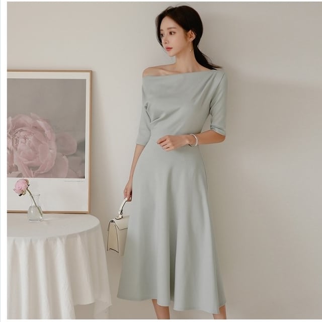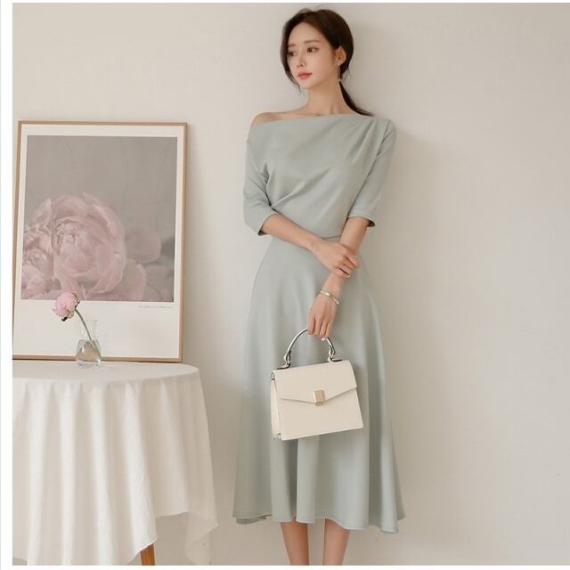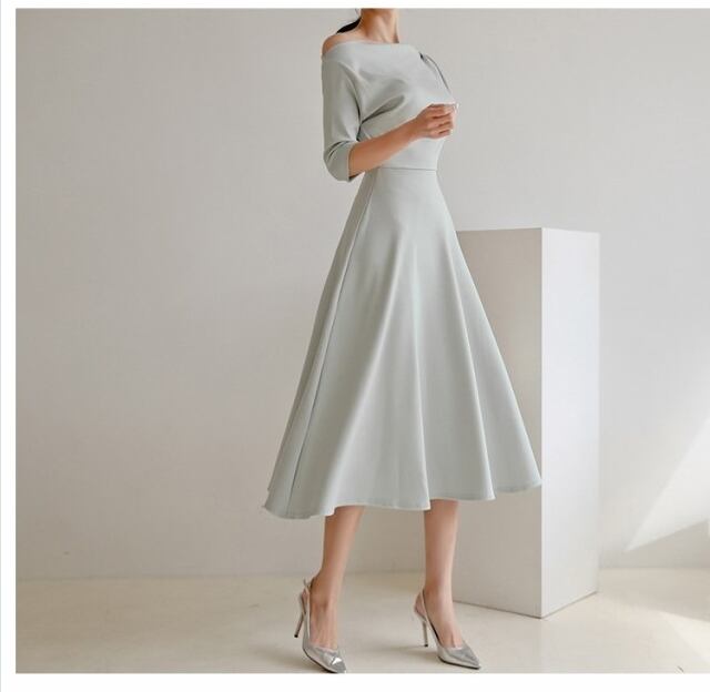 ボートネック ワンピース Aラインワンピース ボートネック ロングワンピース フォーマル レディース 春秋冬 パーティードレス OL 二次