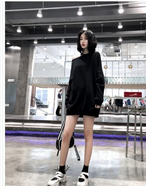 大人可愛い チュニック ワンピース ワンショルダー トップス 大きいサイズ チュニック ワンピース 長袖 ゆったり オーバーサイズ 大人か