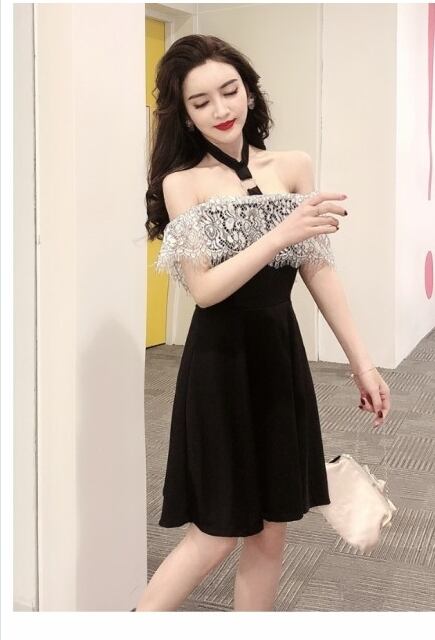 ボートネック ワンピース ワンピース オフショルダー ボートネック ミニ タイト レース フリル フェミニン ガーリー
