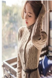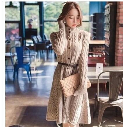 大きいサイズ コーディガン ニット ワンピース きれいめ 膝丈 Aライン ケーブル編み 長袖 無地 ロングニット カーディガン