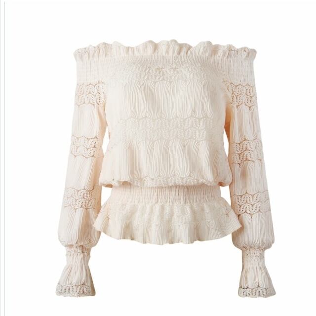 大きいサイズ コーディガン トップス オフショルダー 透かし柄 ペプラム フリル シャーリング ピンク ホワイト 白 フェミニン ガーリー