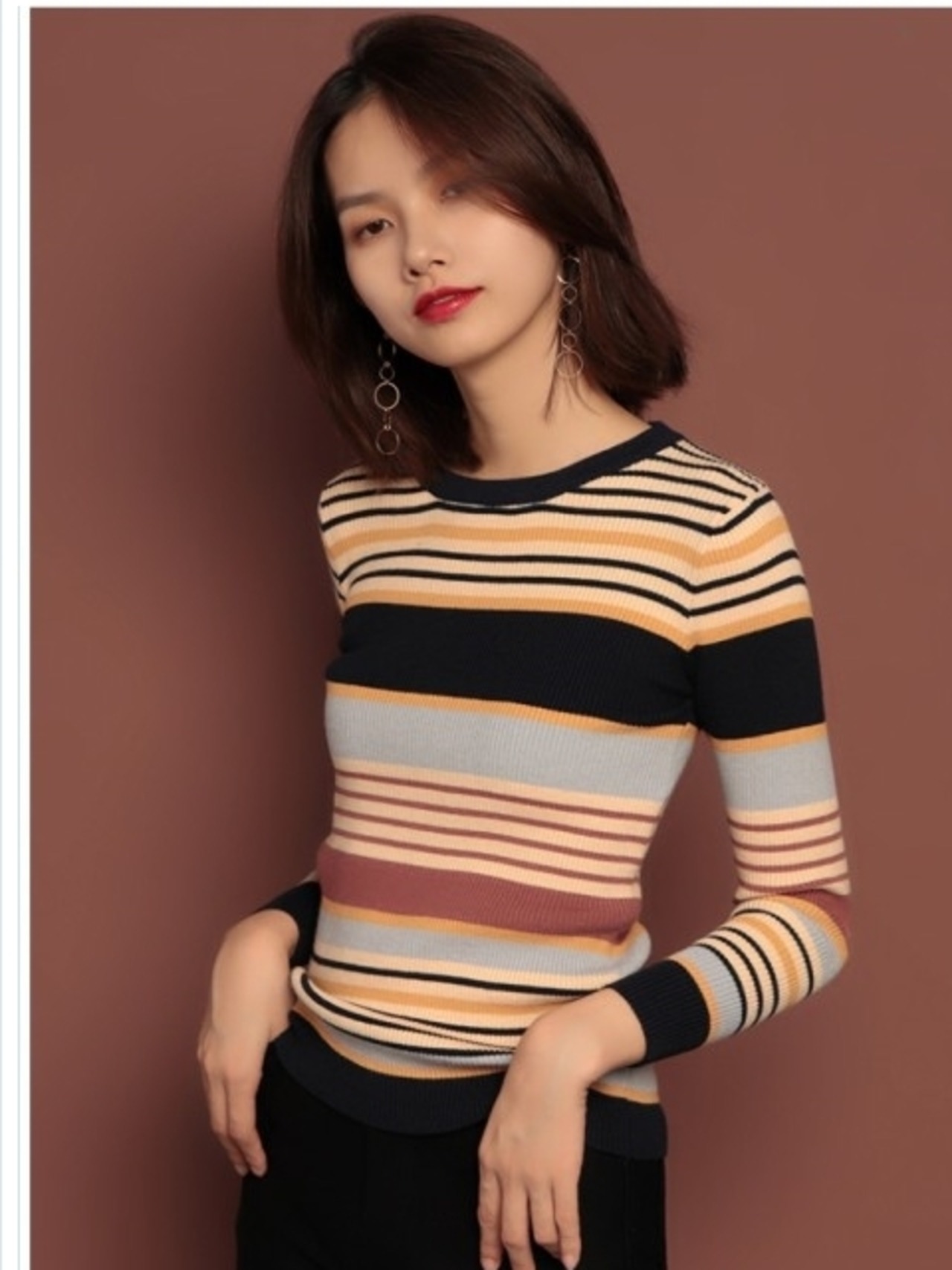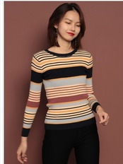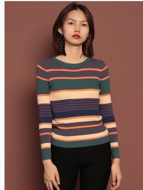 大きいサイズ レディース トップス 春新作 マルチボーダー配色リブニットプルオーバー 大きいサイズ レディース トップス ニット リブニ