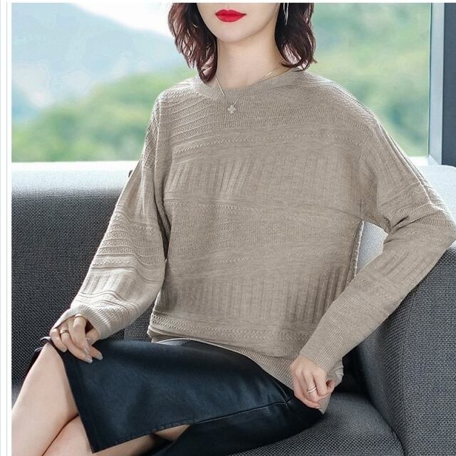 大きいサイズ レディース トップス 大きいサイズ レディース トップス ニットソー ドルマンスリーブ 無地柄ボーダー ドルマンニットソー
