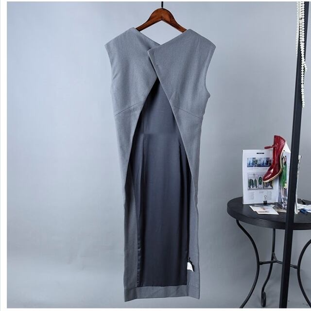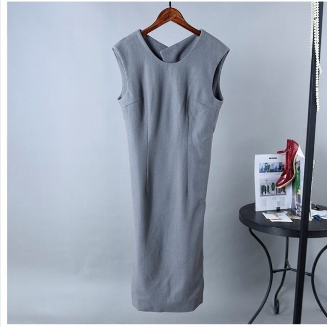 ボートネック ワンピース エンフォルド ワンピース 膝丈 ノースリーブ ボートネック 紺 レディース