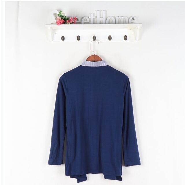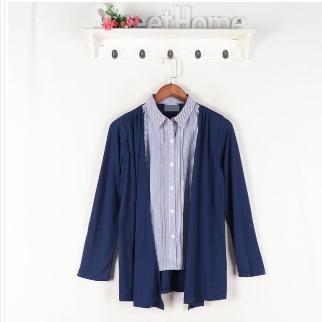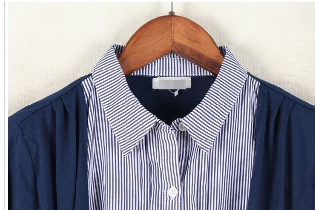大きいサイズ レディース トップス 秋新作 大きいサイズ 重ね着風スキッパーシャツトップス トップス シャツ ブラウス ストライプシャツ