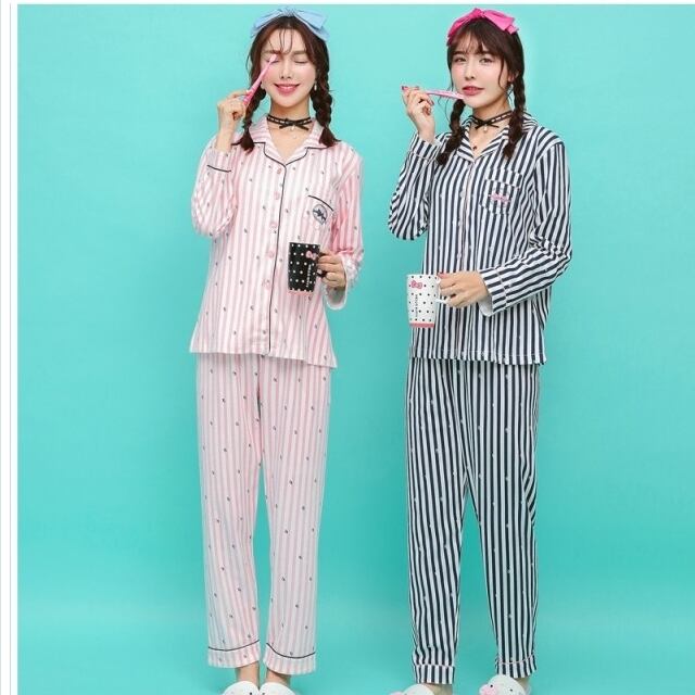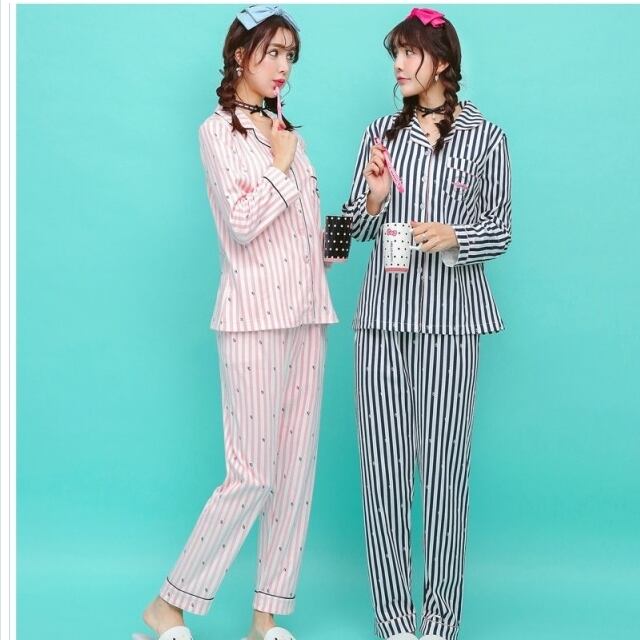 ルームウェア レディース 大きいサイズ パジャマ レディース 春 秋 冬 長袖 パジャマ 前開き パジャマ ボーダー ピンク ルームウエア 寝