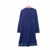 ボートネック ワンピース ワンピース ミニ フレア ティアード ボートネック パフスリーブ 長袖 36 ネイビー レディース