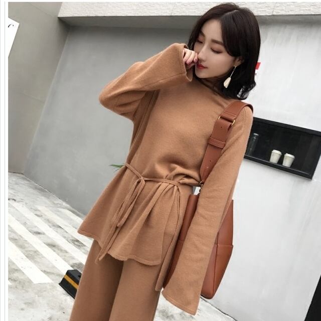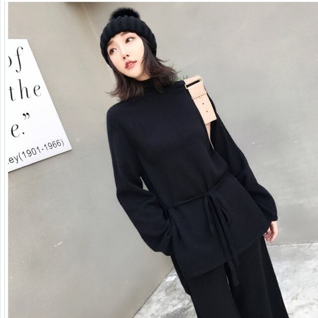 大きいサイズ コーディガン きれいめシルエット パンツスタイル ニットセットアップ タートルネック トップス パンツ セット服 セーター