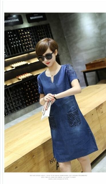 夏物ワンピース デニムワンピース 半袖 ゆったり ミディアム丈 レディース 半袖ワンピース 体型カバー デニム 女性用 膝丈ワンピース レ