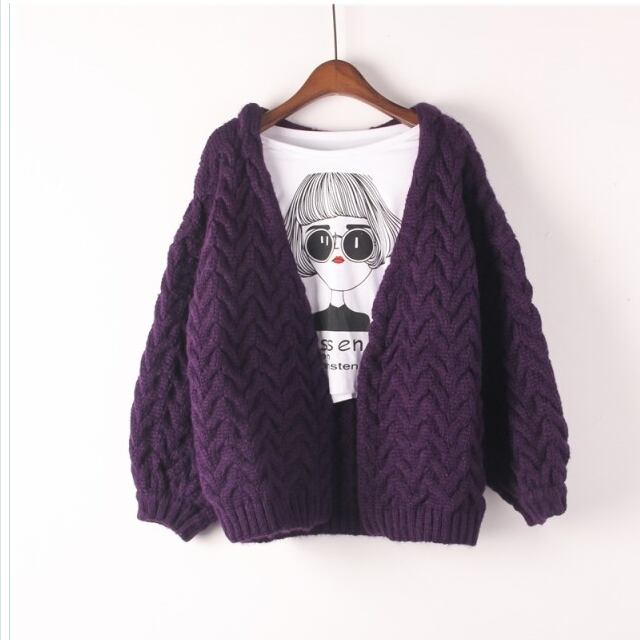 大きいサイズ コーディガン 厚手がかわいいアラン模様のニットカーディガン 全3色