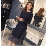 ボートネック ワンピース ニットワンピース ロング 秋 冬 タイト 花柄ワンピース ボートネック 長袖 リブニット シフォン チュール フレ