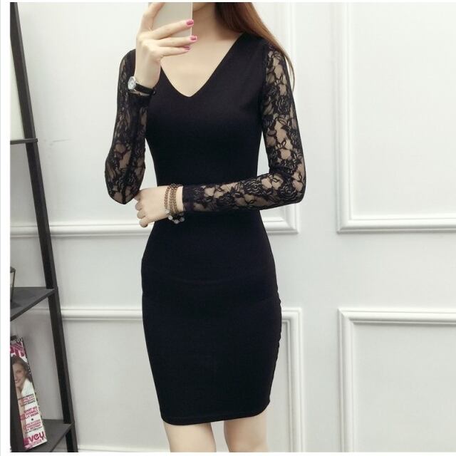 ボートネック ワンピース ボートネック オフショルダー セクシー ワンピース 黒 レース袖 膝丈 タイトワンピース 着痩せ 30代 40代 結婚