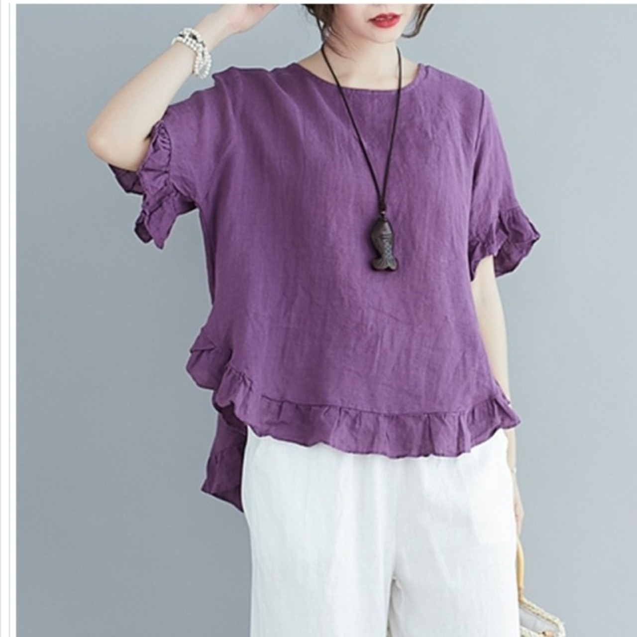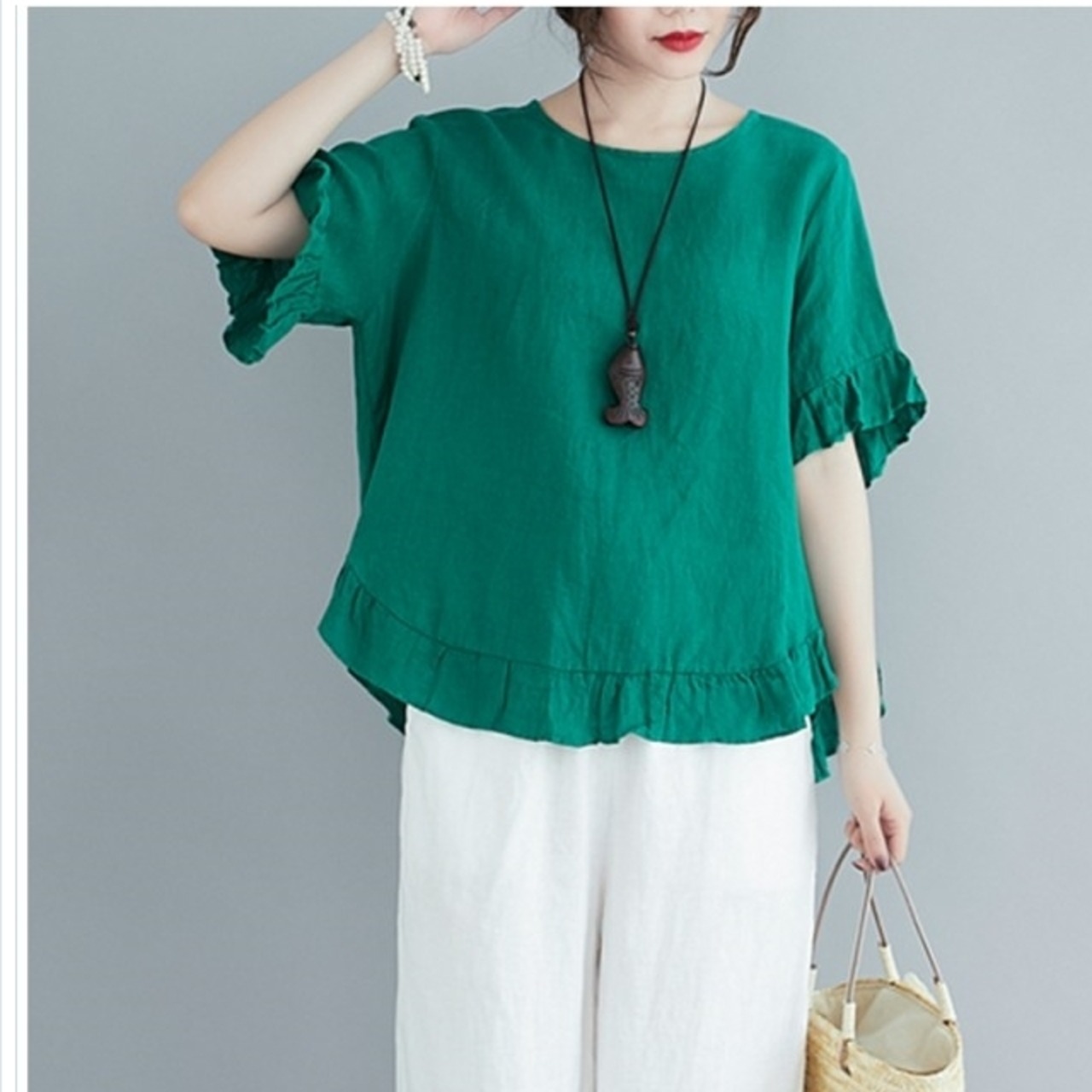 ルームウェア レディース 大きいサイズ 大きいサイズ レディース トップス プルオーバー 花モチーフ刺繍 フリルスリーブ フリル裾