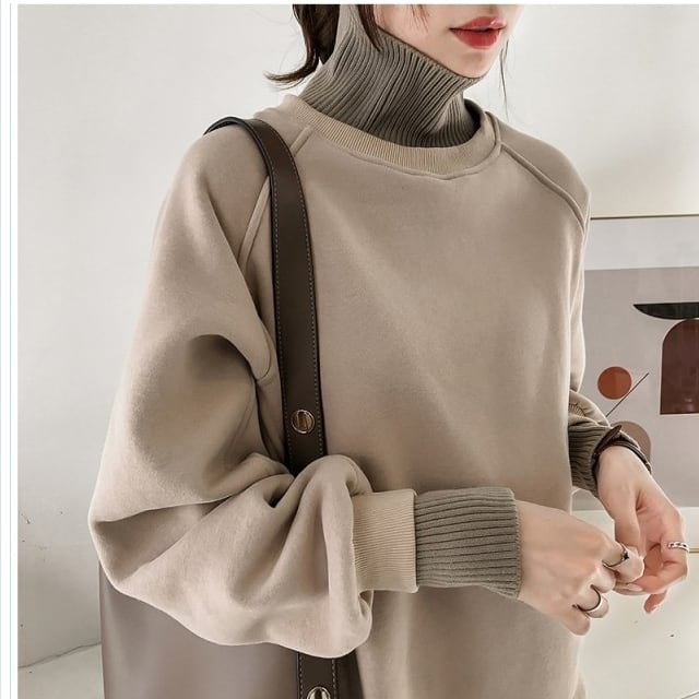 ルームウェア レディース 大きいサイズ ハイネック トレーナー レディース スウェット タートルネック トップス オーバーサイズ