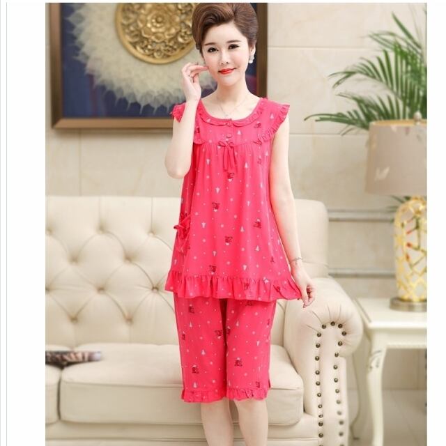 ルームウェア レディース 大きいサイズ ルームウェア パジャマ 綿 春夏 上下セット L プリント柄 M ナイトウェア 寝巻き 2点セット 部屋