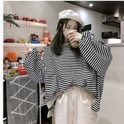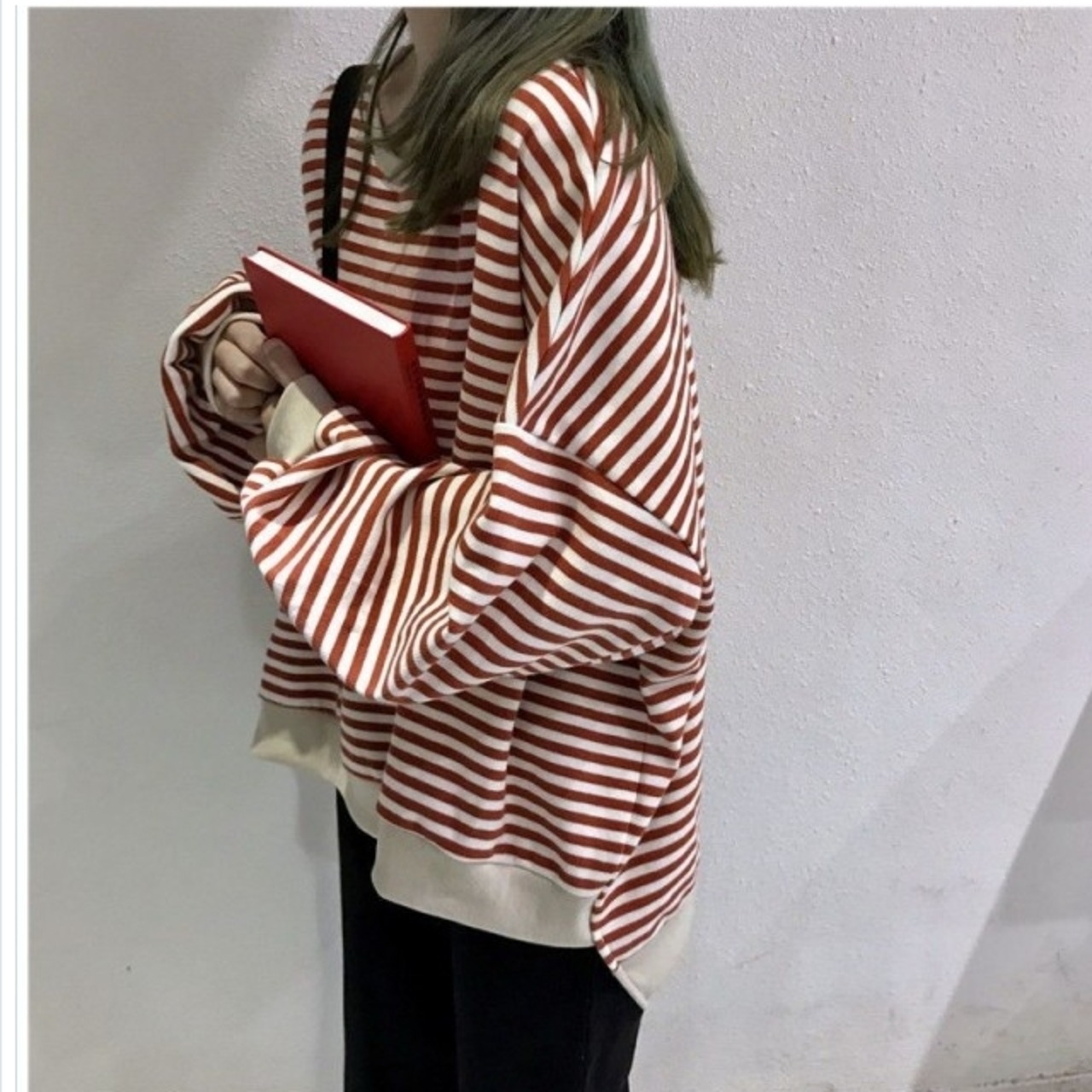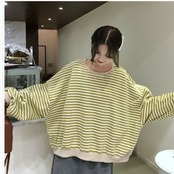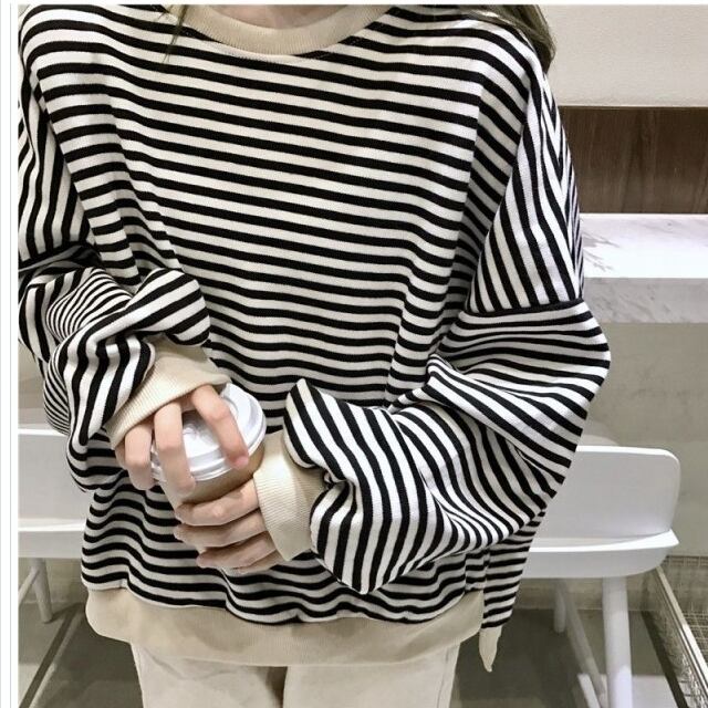ルームウェア レディース 大きいサイズ 春 秋冬 ボーダー ボリューム袖 袖コンシャス 長袖 バイカラー ビッグシルエット オーバーサイズ