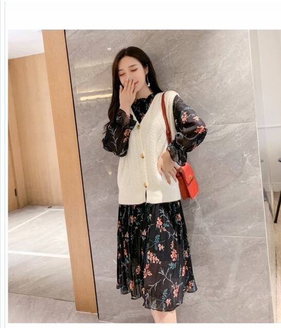 プリーツスカート ロング 花柄 ワンピース レディース 40代 ロング丈ワンピース ロングスカート通勤 花柄ワンピース 長袖 フレア 秋服 シ