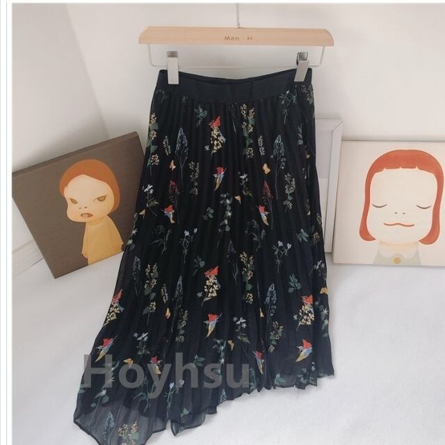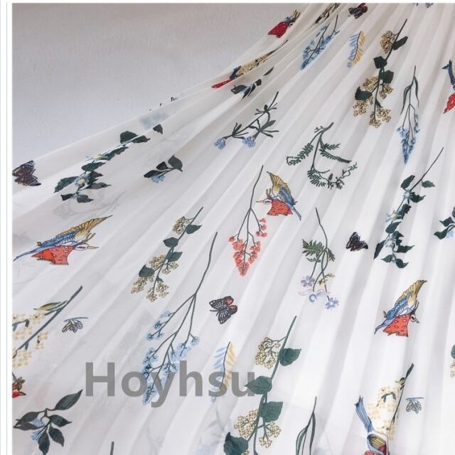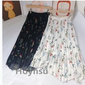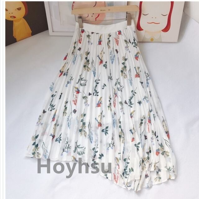 プリーツスカート ロング 花柄 スカート ロング丈 マキシ丈 大きいサイズ レディース 花柄 プリント 消し プリーツ オフホワイト系花柄