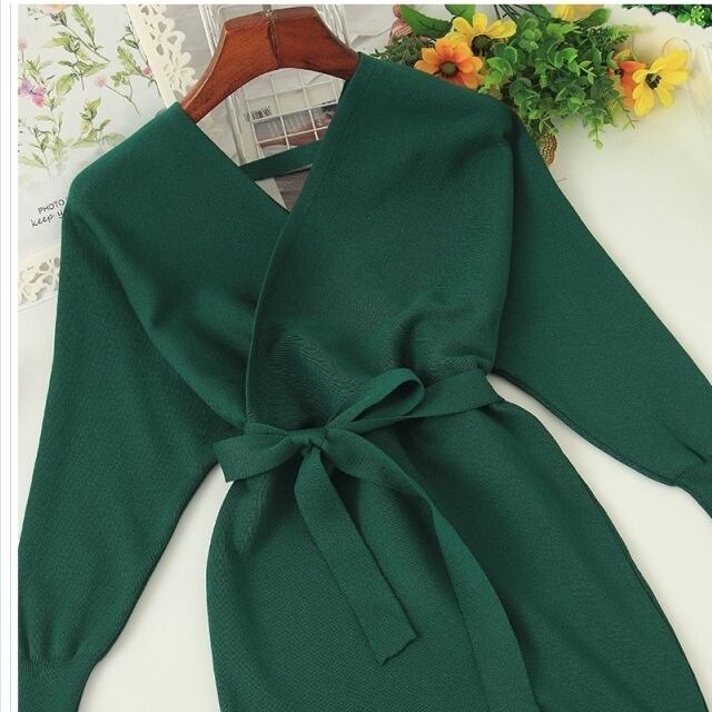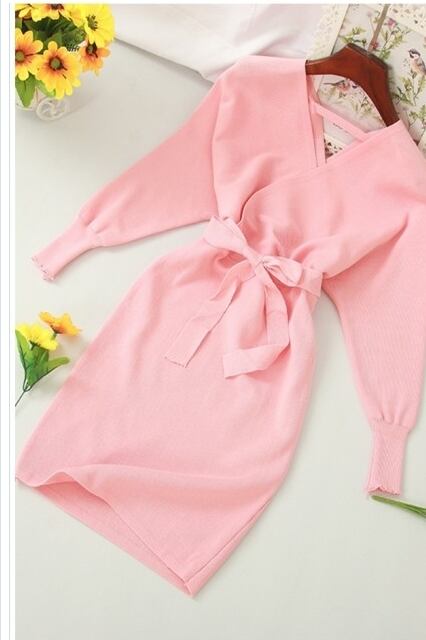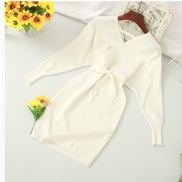 大人可愛い チュニック ワンピース ニット ワンピース カシュクールニットワンピース ぽわん袖 バルーンスリーブ