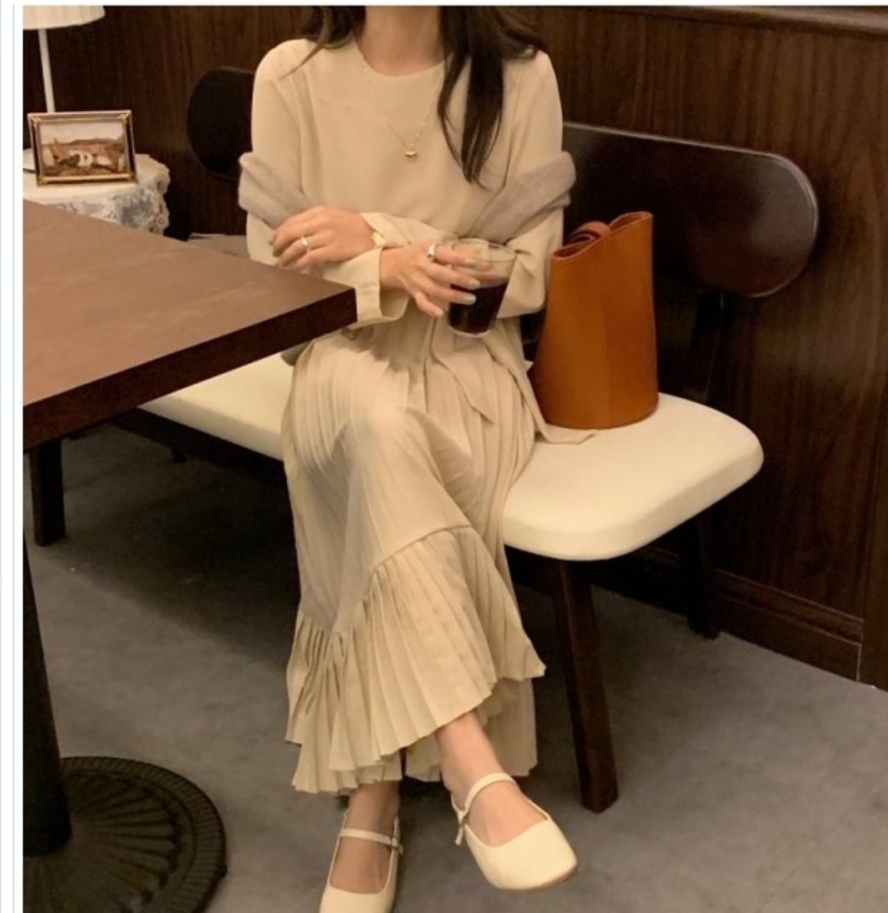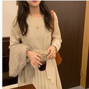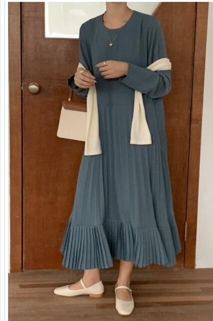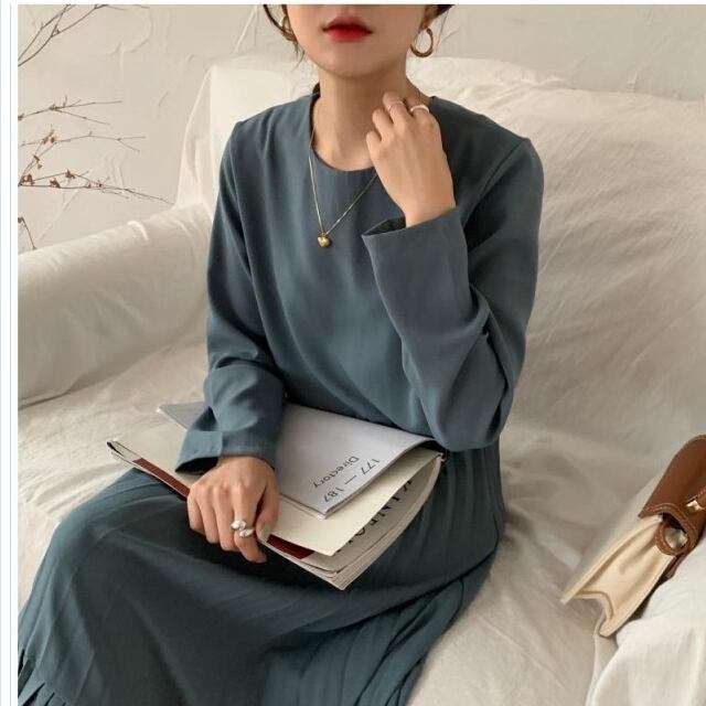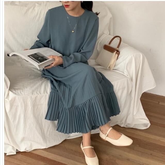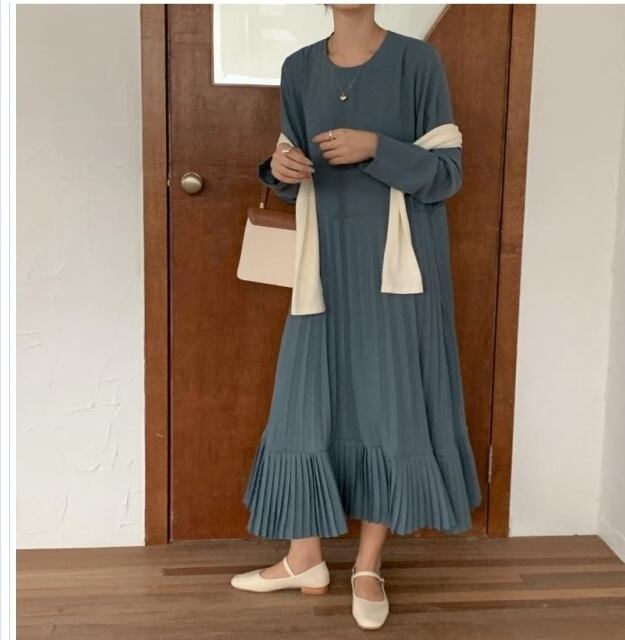プリーツスカート ロング 花柄 ワンピース レディース ニットワンピース ひざ下丈ワンピース プリーツスカート 肩落ち ハーフネック シン