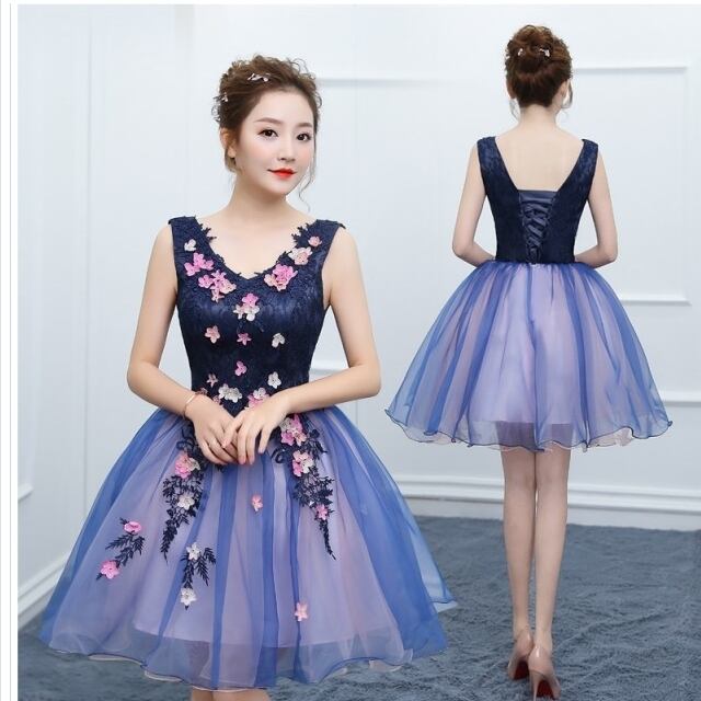 プリーツスカート ロング 花柄 ウェディングドレス ドレス ノースリーブ ミニ丈 Vネック レース ドレス 結婚式 二次会 20代 30代 40代