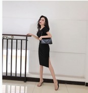 プリーツスカート ロング 花柄 韓国 パーティードレス ボリューム袖 ミディアム丈 Vネック ハイウエスト スリット タイトドレス ボルドー