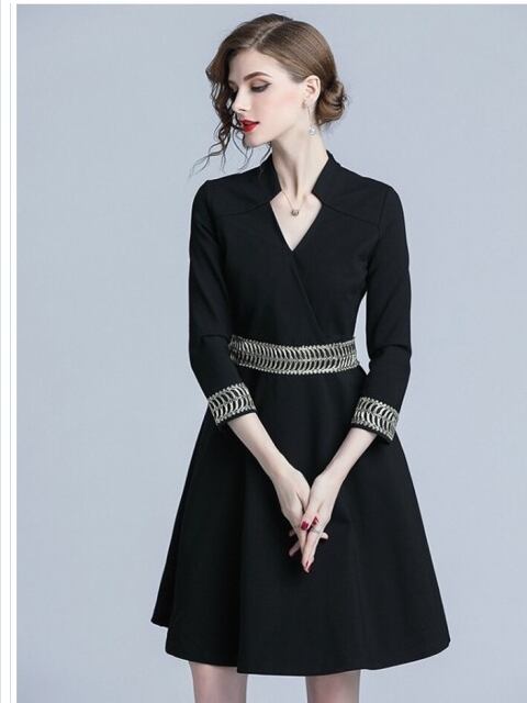 プリーツスカート ロング 花柄 韓国 ドレス ひざ上丈 Vネック シンプル ワンピース スカート 秋冬新作 フォーマル 結婚式 二次会 秋冬 20