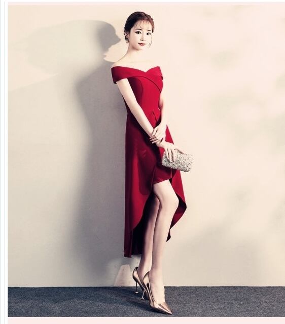 プリーツスカート ロング 花柄 韓国 パーティードレス ひざ丈 肩出し オフショルダー ウェティング 結婚式 披露宴 二次会 お呼ばれ 大人