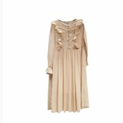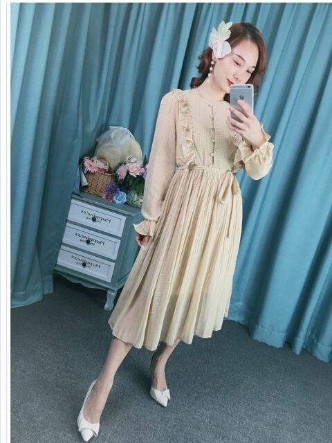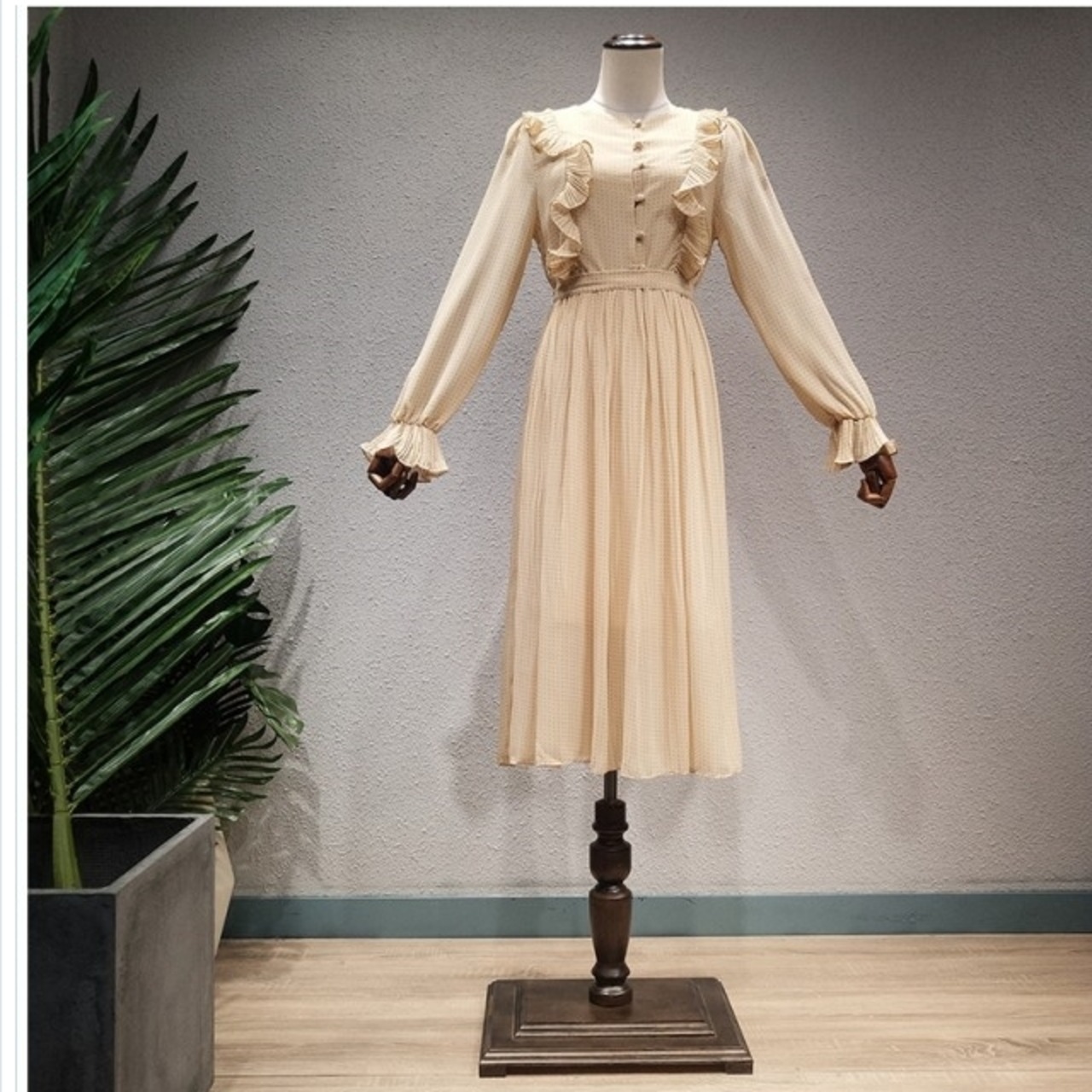 プリーツスカート ロング 花柄 ワンピース レディース 長袖ワンピース フリル ウエストリボン プリーツスカート カジュアル 大人可愛い