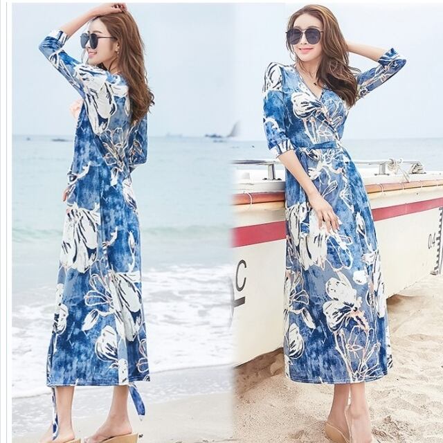 サマー ドレス リゾート アロハ ワンピース リゾートワンピース 夏 ブルー ボタニカル カシュクール カジュアル リゾート サマードレス