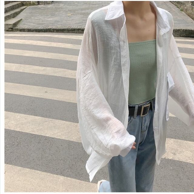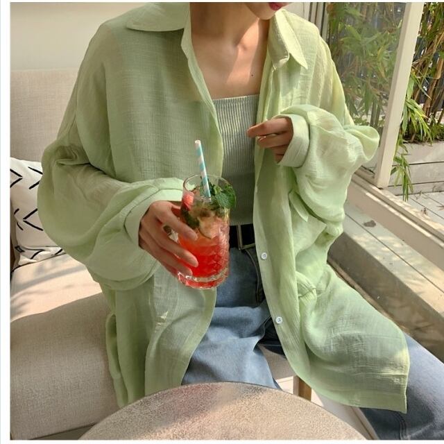 シアー トップス シアーシャツ トップス レディース ブラウス シアー シャツ フロントボタン シャツカラー 長袖 トレンドライク レイヤー
