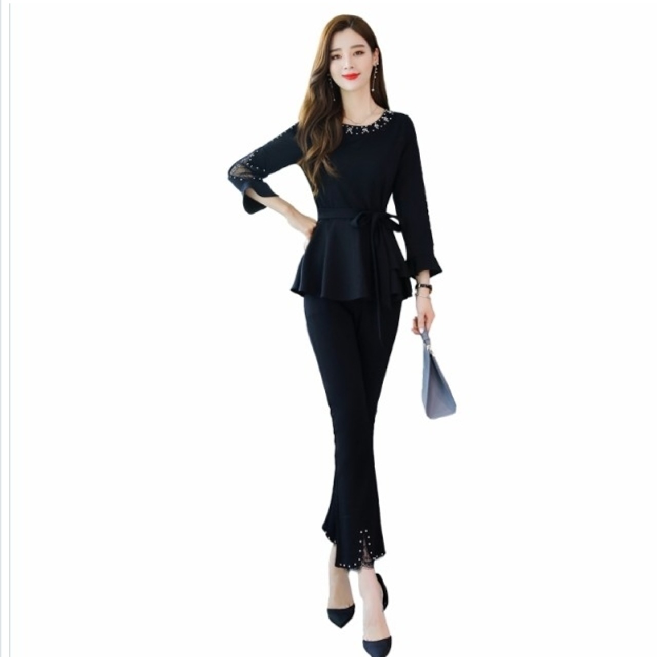 プリーツスカート ロング 花柄 韓国 パーティードレス 袖あり 膝丈 ツーピース レディース スカート ワンピドレス 演奏会 お呼ばれ 発表