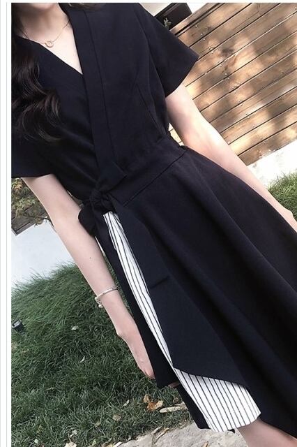 大人 ワンピース タイト 膝丈 ドレス 半袖 ひざ丈 Vネックシャツ ウエストリボン スカート ワンピース デート お出かけ お呼ばれ 20代 30