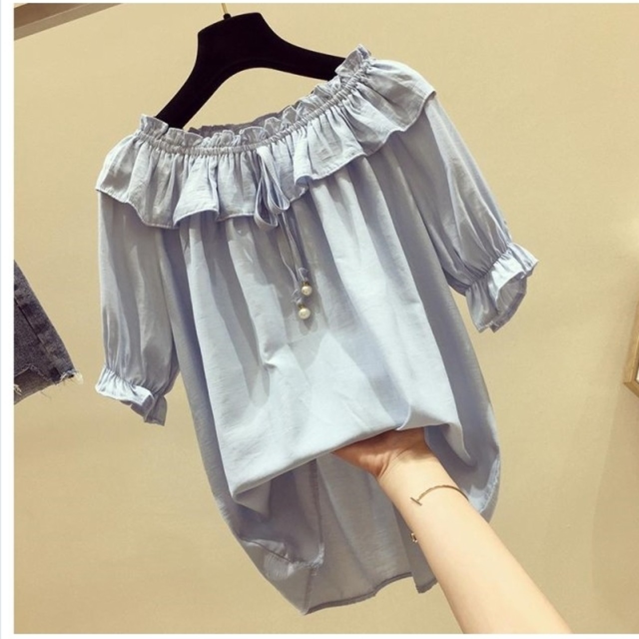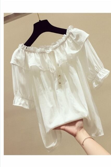 フリルブラウス 韓国 フリル オフショルダー カットオフショルダー シフォンブラウス レディース フェミニントップス 夏服 韓国 ファッシ