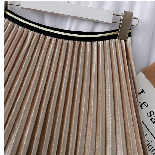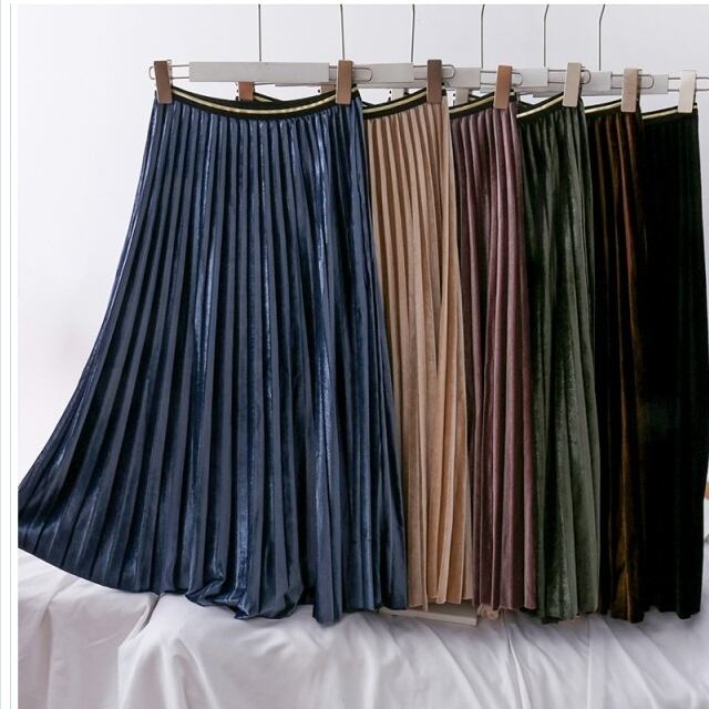 プリーツスカート ロング 花柄 ボトムス スカート 女性 レディース プリーツ ベルベット ハイウエスト Aライン 冬 ピンク グリーン 緑