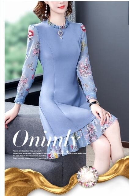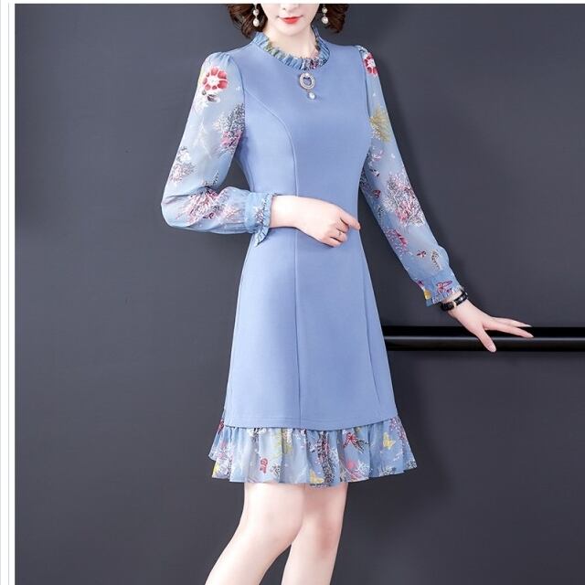 プリーツスカート ロング 花柄 韓国 ツーピース 長袖 ドレス 袖あり ミディ丈 コート ツーピース レディース 結婚式 二次会 秋冬 秋冬新