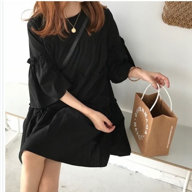 大人可愛い チュニック ワンピース チュニック ワンピース レディース トップス ティアード 半袖 フレアスリーブ フリル ギャザー ゆった