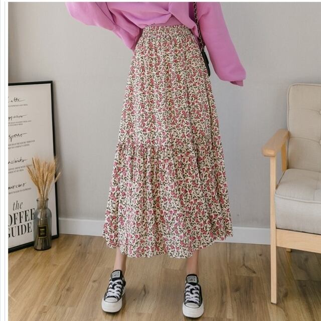 プリーツスカート ロング 花柄 ロングスカート 花柄スカート プリーツスカート シフォン ハイウエスト 春夏 トレンド 大人可愛い 通勤 お