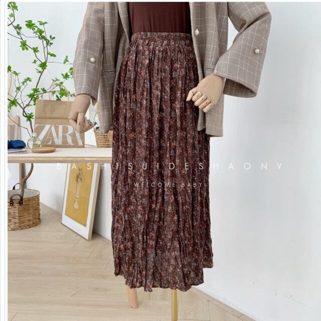 プリーツスカート ロング 花柄 ペンドルトン 変わり 花柄 総柄 ポリ素材 プリーツ スカート ロング丈