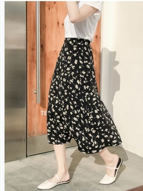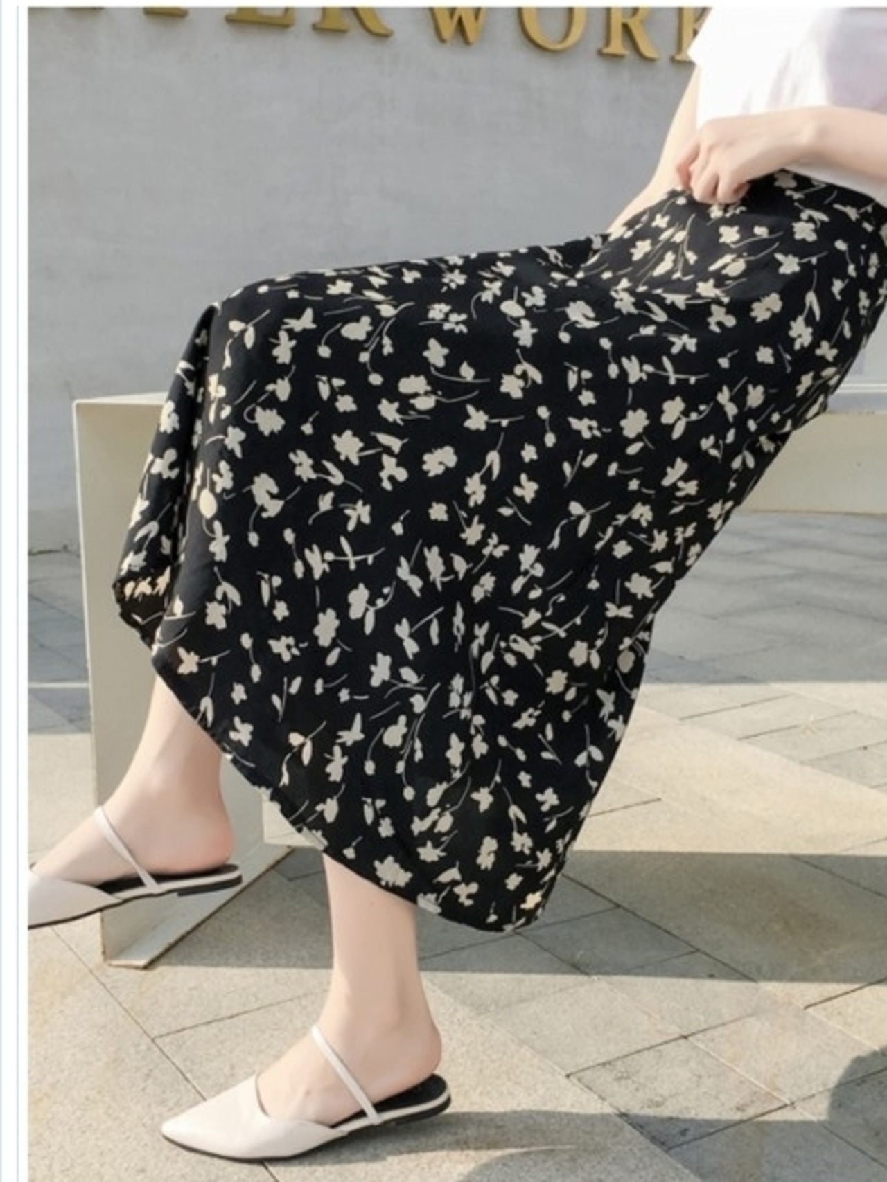 プリーツスカート ロング 花柄 クラネ ロングスカート 黒 マルチカラー 1 ボトムス ミモレ丈 花柄 M 切替 プリーツ レディース