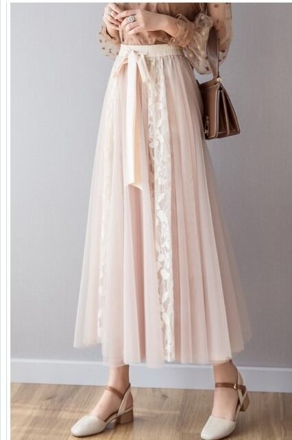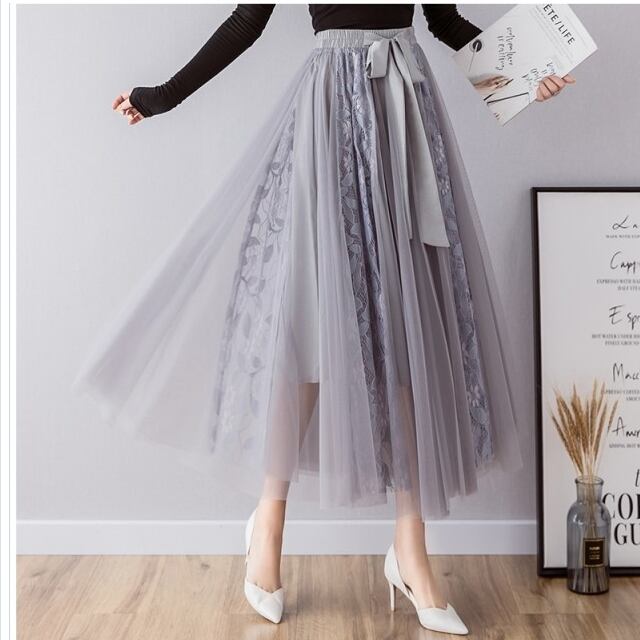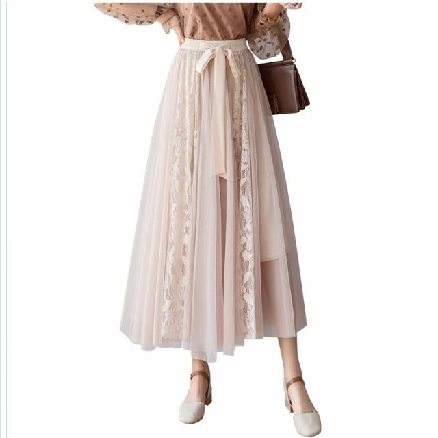 プリーツスカート ロング 花柄 フレア スカート プリーツ ロング丈 ロングスカート レース 花柄レース レディース