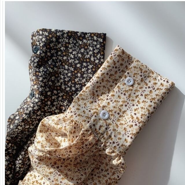 プリーツスカート ロング 花柄 ワンピース レディース 花柄ワンピース 長袖 Vネック シャーリング パフスリーブ プリーツ フェミニン 大