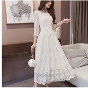 フレアマキシワンピース 春 夏 パーティードレス ロング丈 パーティードレス 袖あり 大きいサイズ ロング レース ワンピース レース ロン